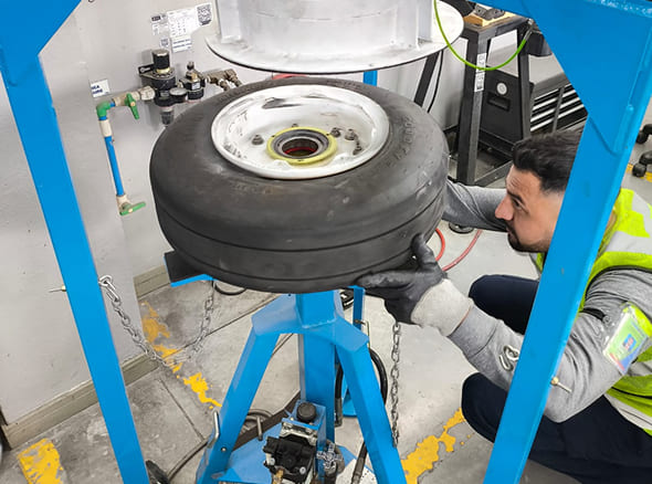 Contamos con un Taller categoría accesorios mecánicos clase I de ruedas, para realizar trabajos de remoción, desensamble, ensamble e instalación de ruedas para las aeronaves que se encuentran dentro de nuestra lista de capacidades aprobada. Aeronaves a las que tenemos capacidad de atender para servicio de ruedas: que aparezcan solo estos y así tener presente que aparezcan las fotos de esos tres aviones en el carrusel lateral.
